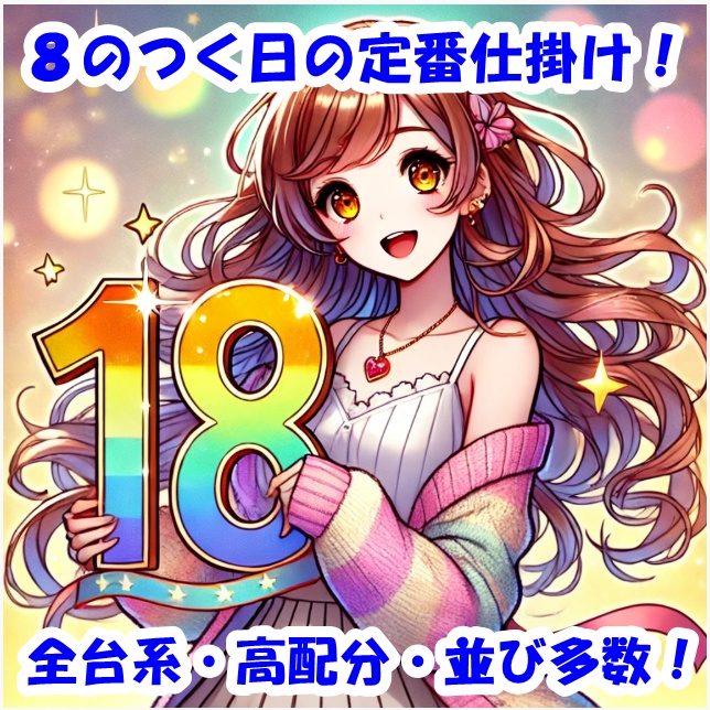 2月18日(水)│エスパス新大久保│安定の実績を誇る⑧の日!今回も全台系濃厚機種に加え1/2系&高配分以上の優秀機種が多数登場!優秀並びも様々な箇所で確認でき、数多くの機種から大量出玉の優秀台が出現!