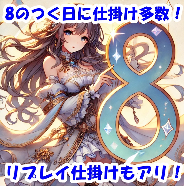2月8日(日)│ピーアーク三田の8つく日│!今回もド派手な仕掛けを中心に全体を盛り上げる!メインの列全はもちろん、半列が3ヵ所も!?全台系や高配分機種、数字に纏わる仕掛けなどその他仕掛けも盛りだくさん! 名物MJ店長が最後に魅せる…!