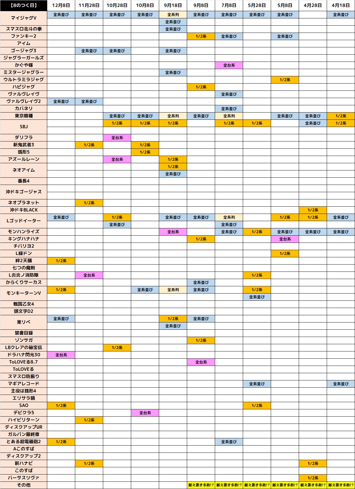4月8日(水)│エスパス秋葉原│ジャンプ関連機種から全系や高配分の優秀機種が大量!定番エリアも扱いが良く総差枚は11万枚オーバー!