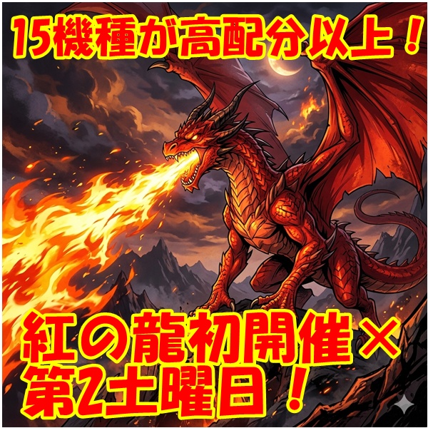 4月11日(土)│エスパス赤坂見附│紅の龍初開催×第2土曜日で平均120枚超!全系や高配分以上の仕掛けが15機種以上にあり!独り言関連機種も好成績!