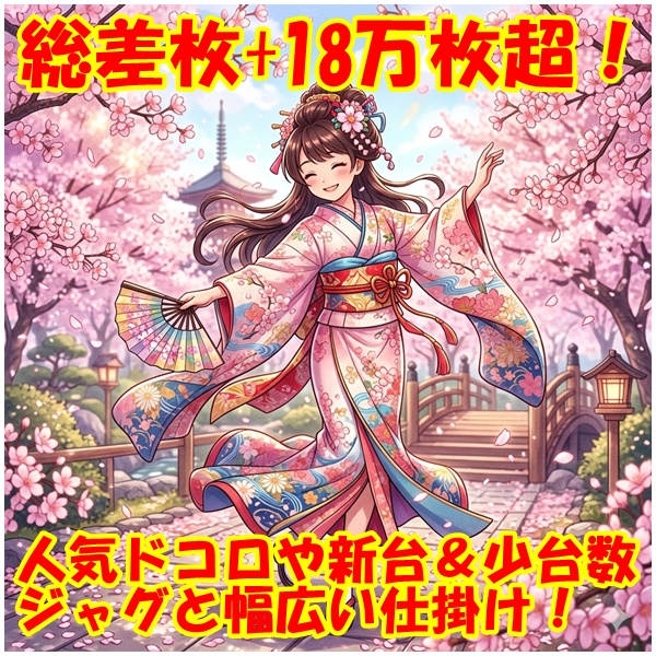 4月18日(土)│ピーアーク三田│第三土曜×8のつく日│周年月間で仕掛けが圧巻の一日!全域で反応し体感1/3以上の高配分データが多数出現、差枚も余裕のプラスとなり店内全体で強さが際立つ結果に!