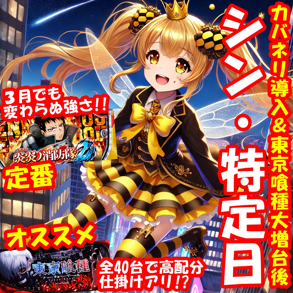 3月8日(日)│パラッツォ三郷中央│⑧のつく日のシン・特定日…スマスロカバネリ導入・東京喰種1BOX完成の計40台から仕掛けアリ?定番の炎炎2は3月に入っても強さ変わらず…狙うならまずココから!