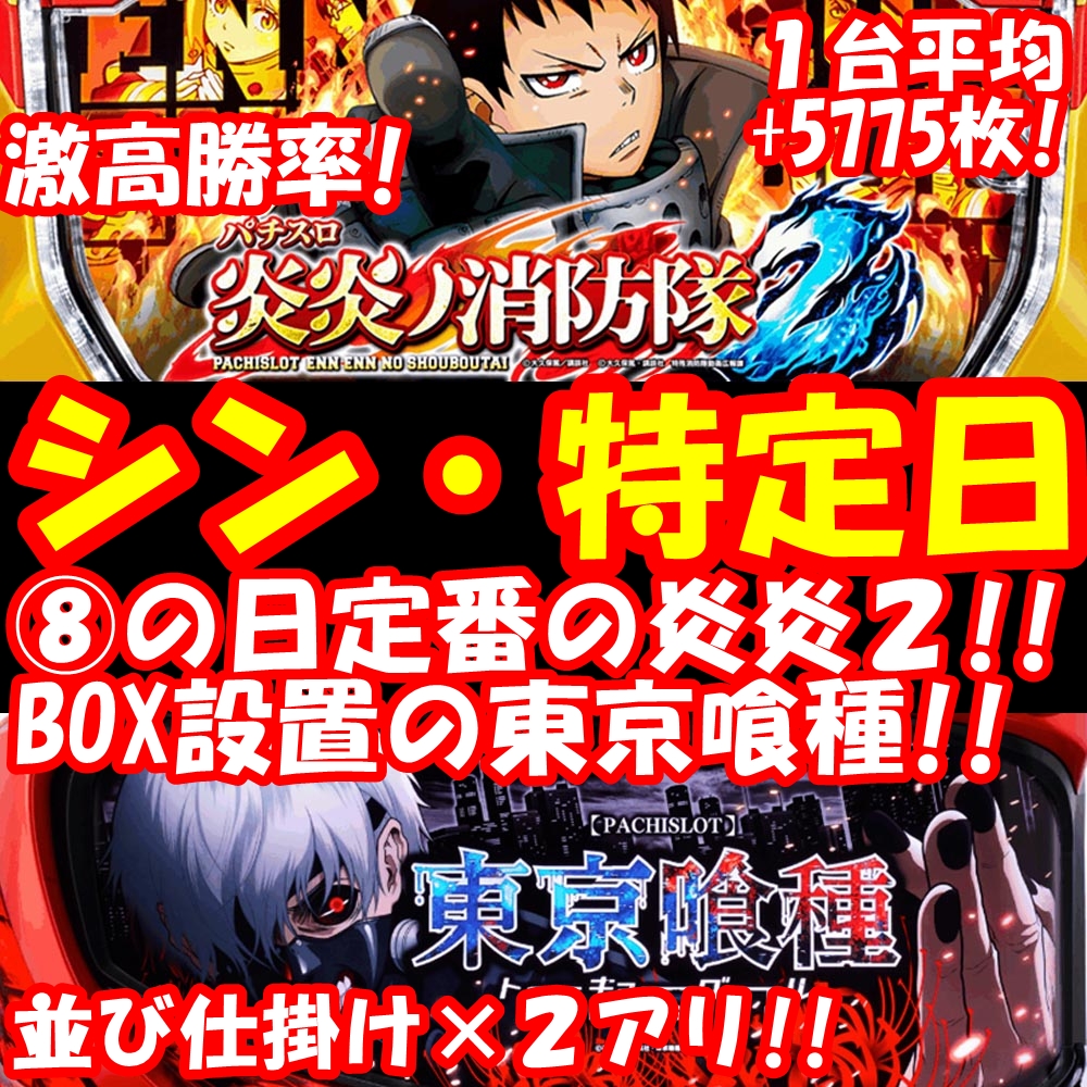 3月18日(水)│パラッツォ三郷中央│ワロスさん来店のシン・特定日…それでも強いのはやはり「炎炎2」と「東京喰種」の二本柱!この2台は特に集中して攻めるべき傾向アリ!