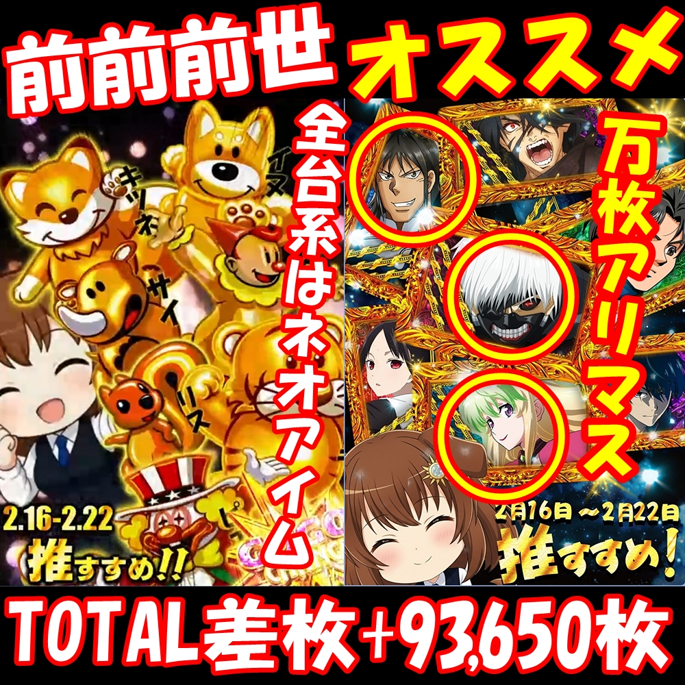 2月18日(水)│エスパス秋葉原│最強ゲリラの黒閃発動で平均+520枚オーバーの爆出し!全台系や高配分などの仕掛けが大量で幅広い機種からお宝台が続出!声優誕や増台機種からも注目の出玉アリ!