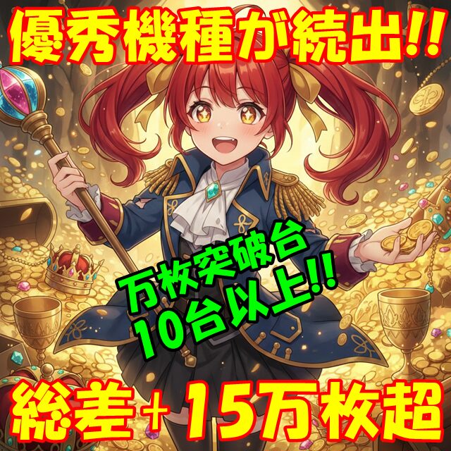 2月3日(火)│エスパス新小岩│沖スロを筆頭に様々なエリアから優秀機種が出現!今回もメインどころを中心に全台系&1/2系濃厚の高配分機種が続出し、全部で60台が+3,000枚オーバーを記録!万枚突破台も12台出現し、総差枚+15万枚超の好成績に!