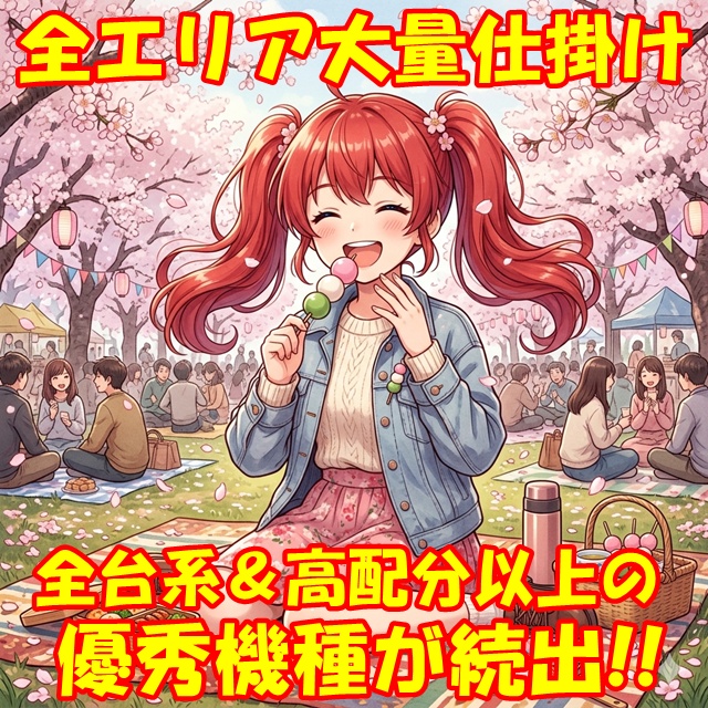 3月28日(土)│エスパス赤坂見附│第4土曜+桜梅桃李で平均約+400枚!!多台数から少台数スマスロまで全系や高配分の優秀機種が大量!