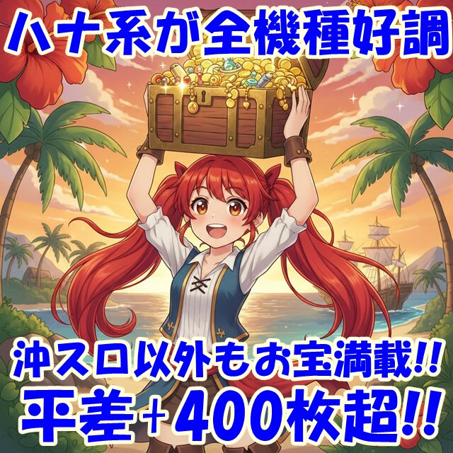 12月3日(水)│エスパス新小岩│3の日に強い沖スロはハナハナ系が全機種高配分仕様に!主力機&毎日オススメ機種も優秀仕掛けで爆裂台が続出!その他ノーマル・少台数機種・新台系も随所で優秀台が散見され、平均差枚+400枚オーバーの好成績をマーク!