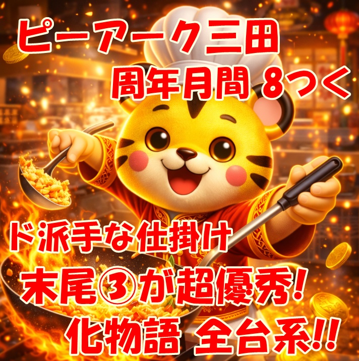 4月8日(水)│ピーアーク三田│激アツ8つく│周年月間は本気モードで駆け抜ける!?新店長就任から勢い継続中!! スマスロ化物語がド派手に全台系!末尾3番台も超優秀!スロット平均+187枚と全体でも大いに盛り上がりを魅せた!