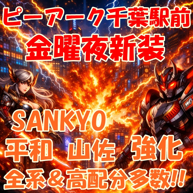 3月13日(金)│ピーアーク千葉駅前|金曜日はSANKYO AREA71中心にSANKYO・山佐・平和の3メーカーが大チャンス!強化!メインSANKYOは多台数機種が高配分!山佐からゴッドイーターが全台系!新台のカバネリも好調台多数の高状況!