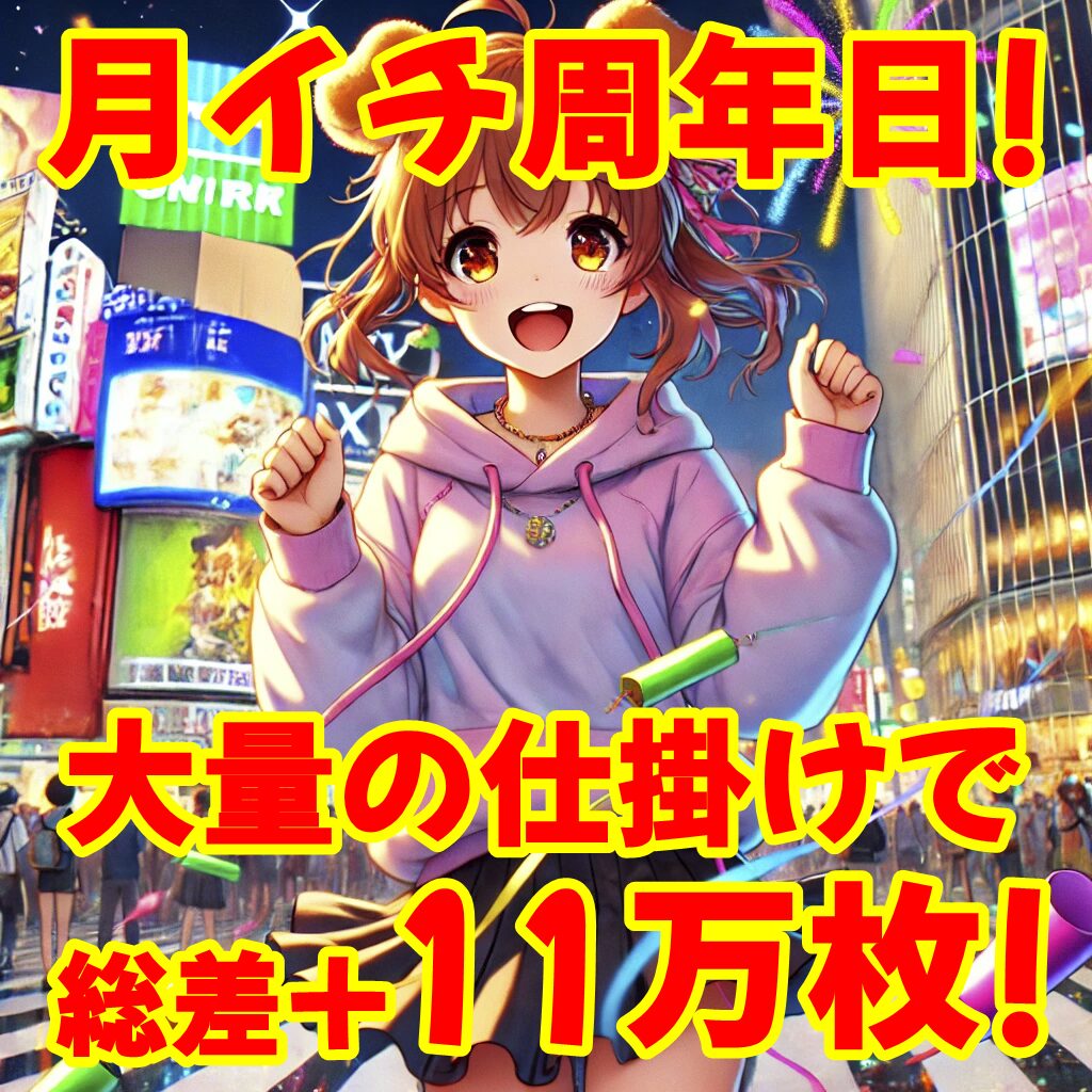 3月7日(土)│エスパス赤坂見附│錬パス初開催は平均300枚超の好結果!7台並びや全系機種多数など月周年や土曜日仕掛けも確認!!キャラ誕のモンキーVからは万枚超が複数あり!