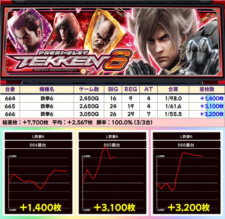 各機種とも素晴らしい結果でしたが、中でも5台中3台が+4000枚クラスの「Lダークネス8.7」、4台中3台が+2000枚以上の「SBJ」がひと際輝いていました!