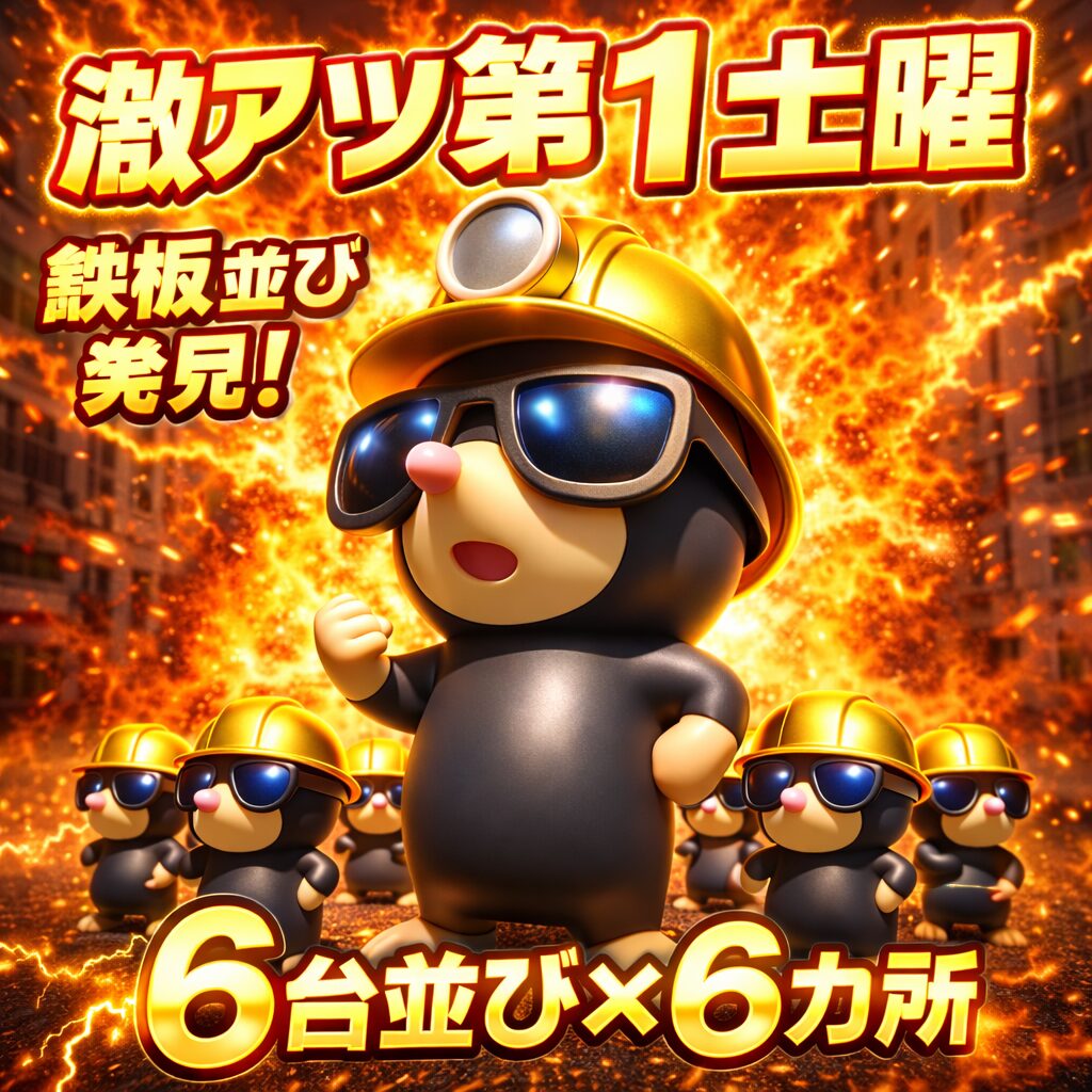 12月6日(土)│ピーアーク竹ノ塚│超激アツの【第1土曜日】!総差枚+2.4万枚&台平均+69枚の好結果に!質の高い6台並び&単品優秀台を多数確認!第1土曜日はやっぱり狙い目!