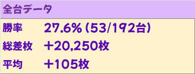 10月最初の⑥のつく日の結果は総差枚+20,250枚、平均差枚+105枚。⑥のつく日の安定感はやはり抜群ですね。