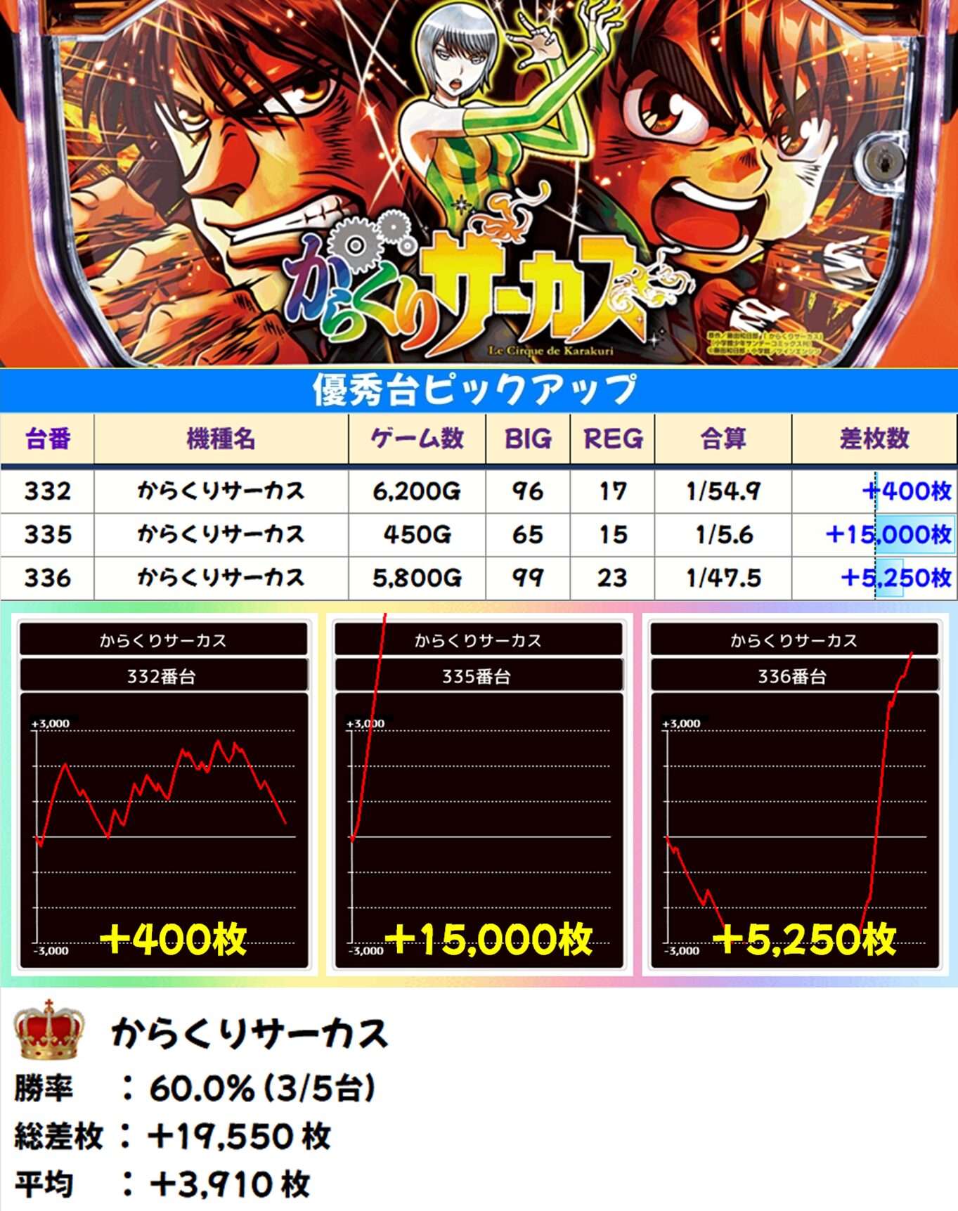 からくりサーカス(3/5台) 平均+3,910枚