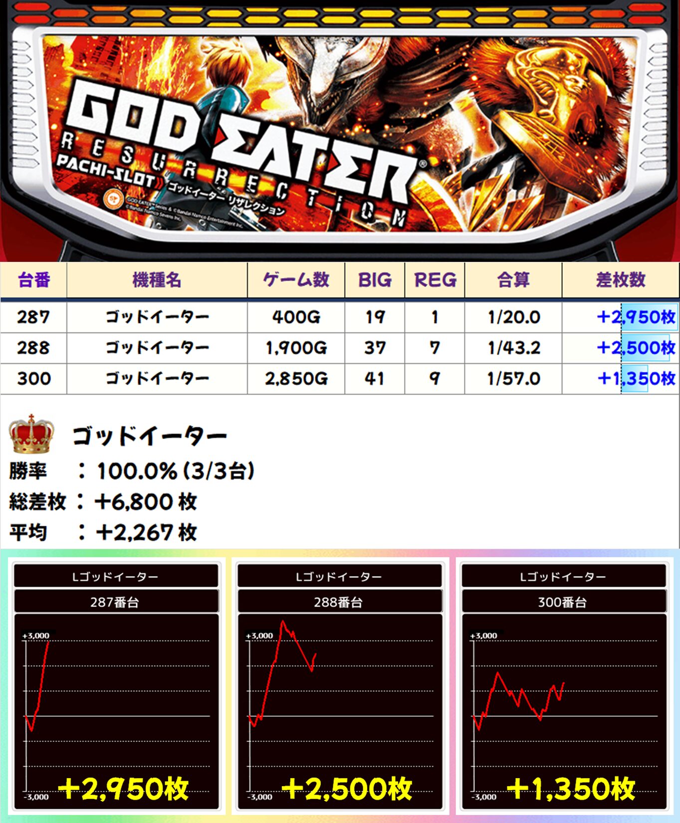 ゴッドイーター(3/3台) 平均+2,267枚