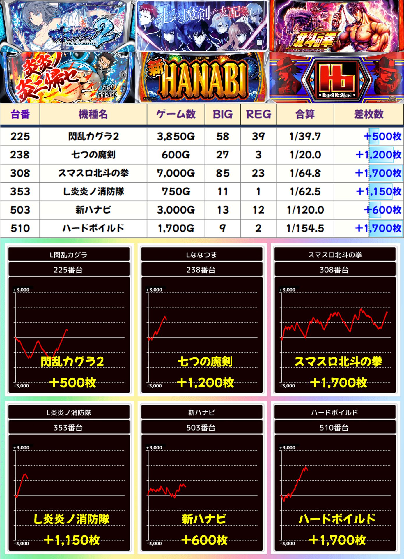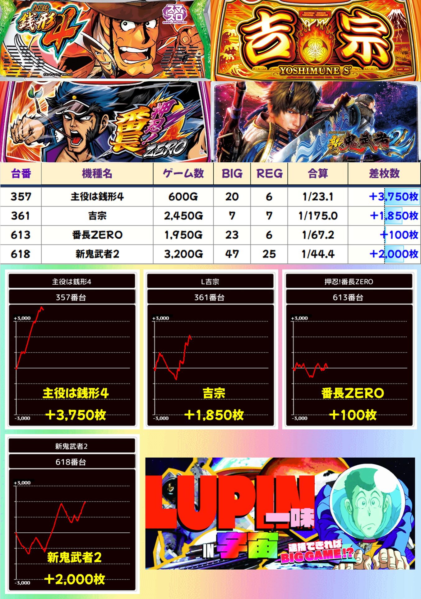 ⑥のつく日はメイン機種から少台数機種まで様々な機種にお宝台アリ! 次回の⑥のつく日も傾向は変わらないはずなので、10月最後の⑥のつく日にも期待しましょう。