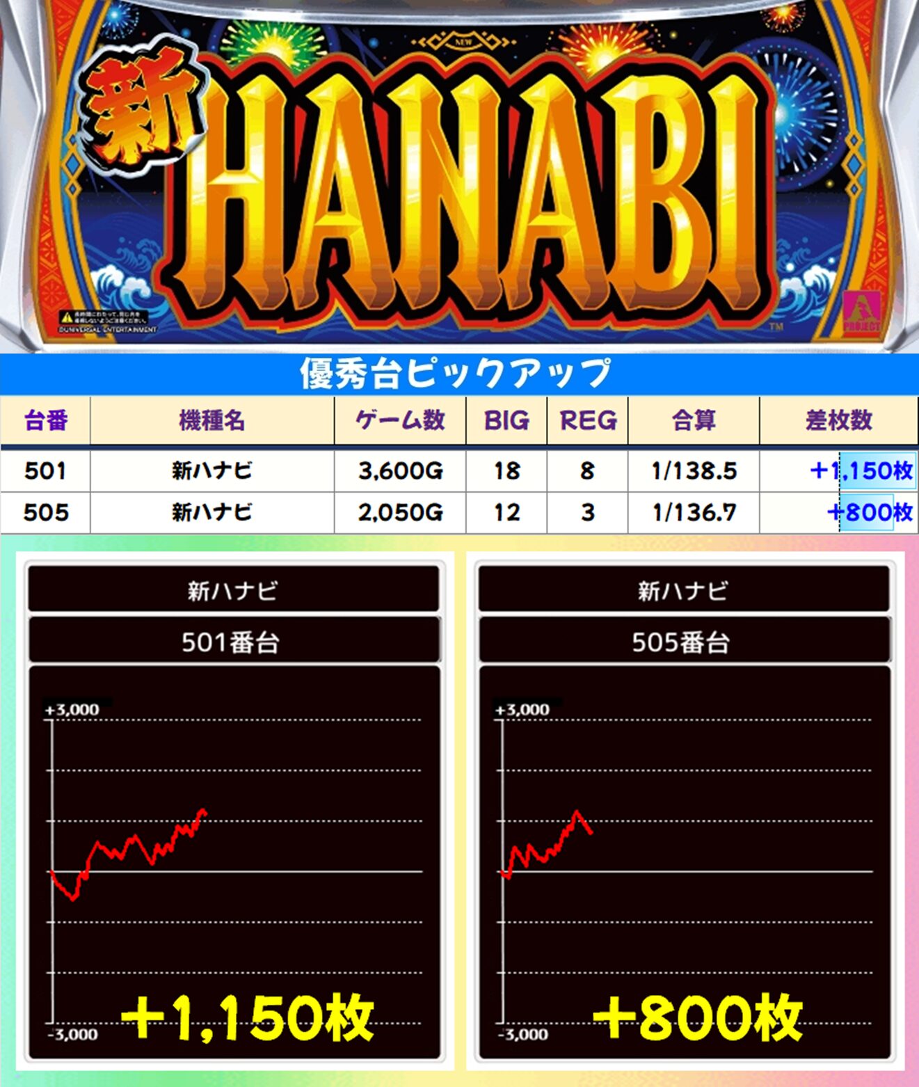 4台設置の「新ハナビ」も高配分。ノーマルタイプも抜かりナシの仕掛けでしたね。