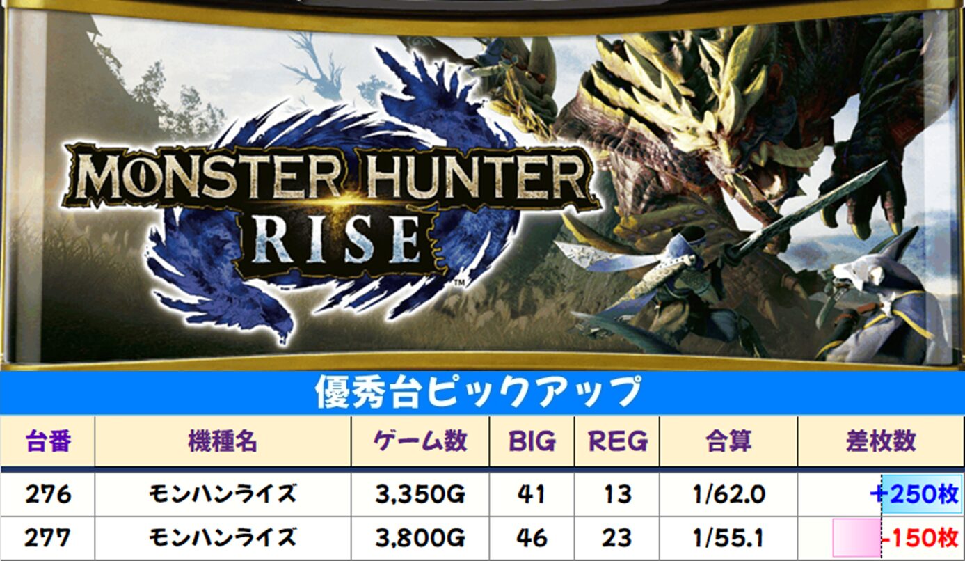 「東京リベンジャーズ」「モンキーターンV」「モンハンライズ」の3機種が高配分。狙い目の少台数機種、メインの多台数機種に仕掛けがありました。