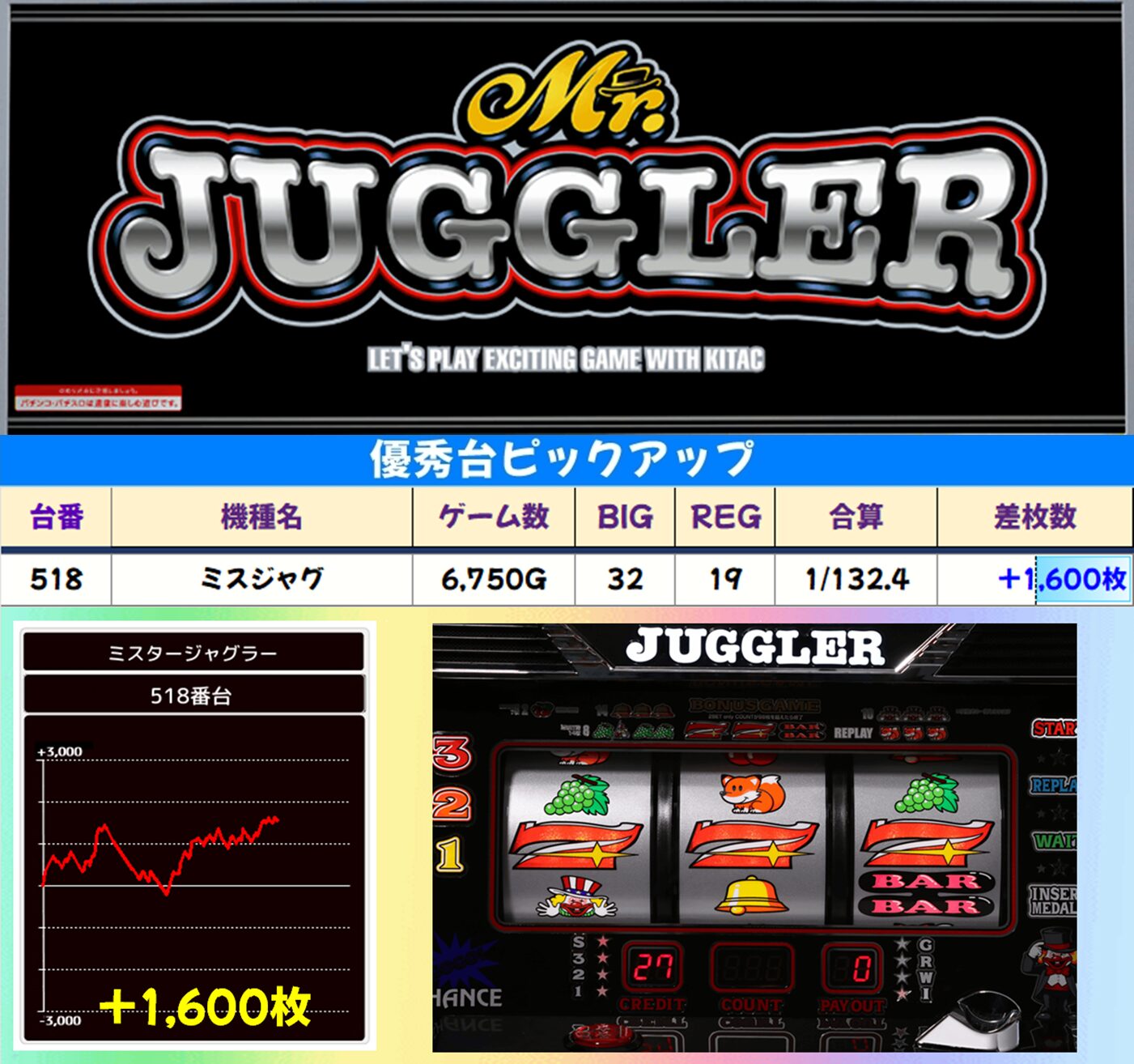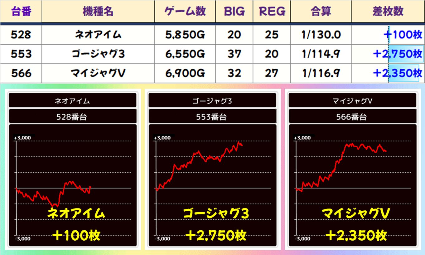 ⑥のつく日は相変わらず優秀機種が多数出現する狙いやすい1日。次回の⑥のつく日の仕掛けにも期待しましょう!