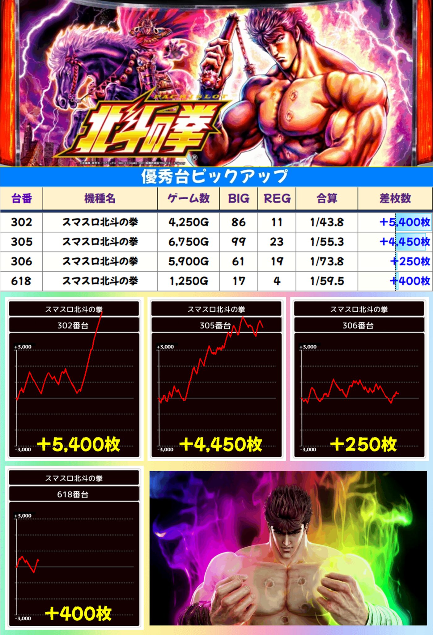 スマスロ北斗の拳(6/8台):平均+1,363枚
