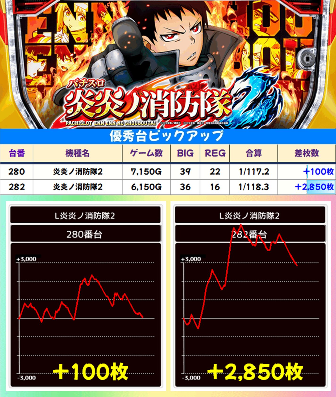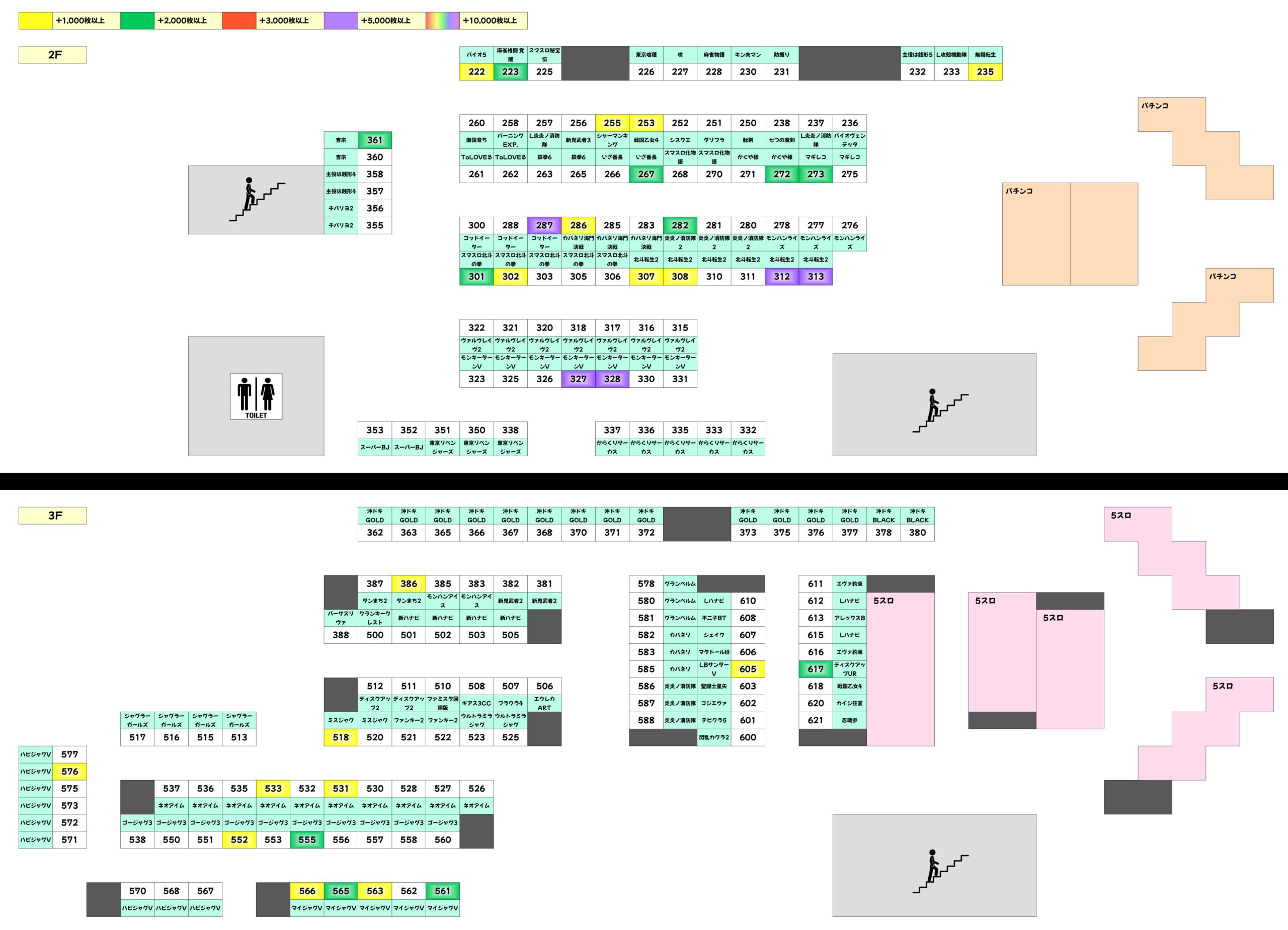 高配分機種も複数! 「炎炎ノ消防隊2」「スマスロ北斗の拳」「ゴージャグ3」の3機種にお宝台が多数ありました。