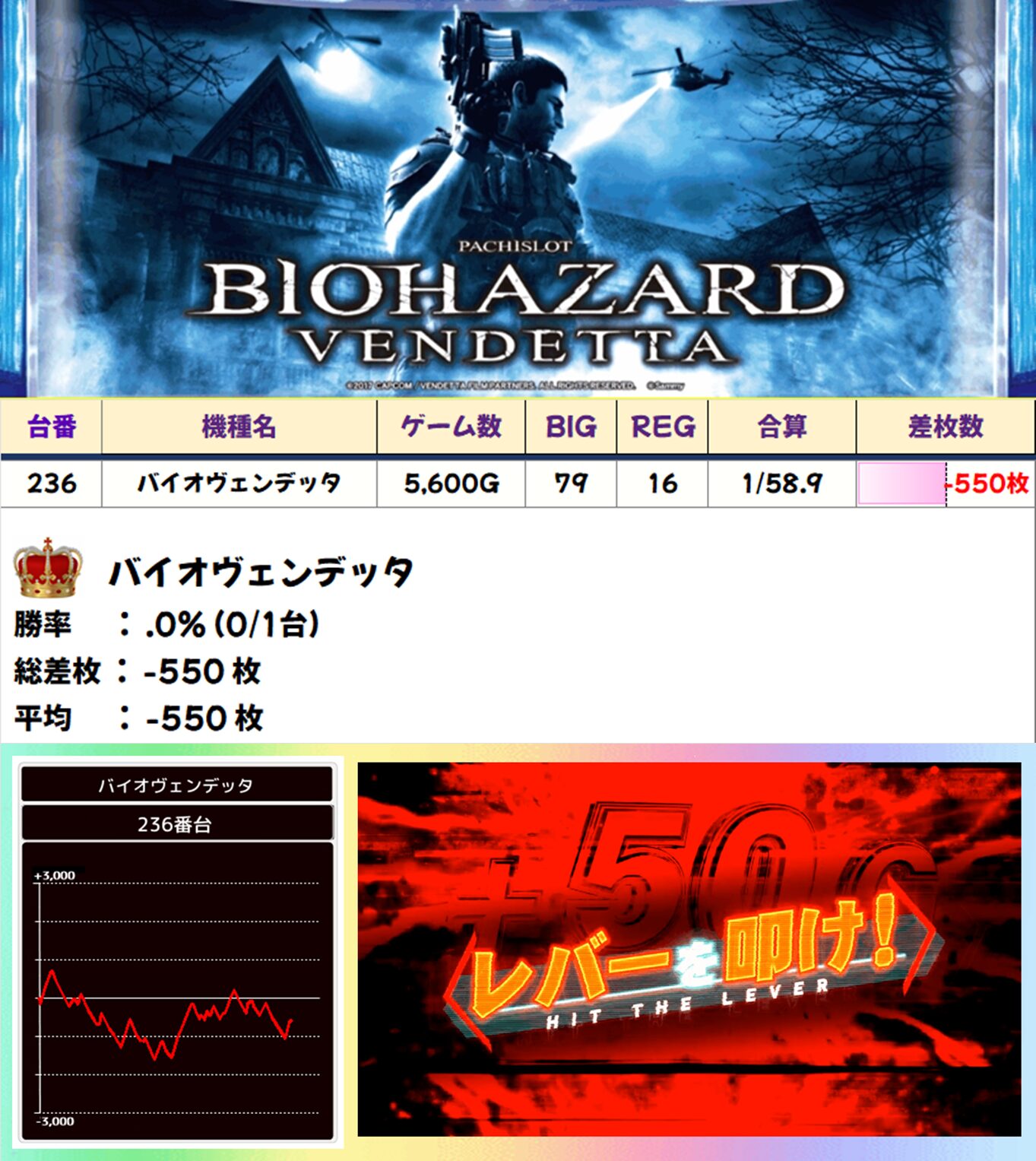 ⑥のつく日の「バイオヴェンデッタ」は鉄板! ですが、前回の⑥のつく日に引き続き本日も残念ながら不発という結果に…。ただ、鉄板なのは変わらず! 次回の⑥のつく日に期待しましょう。