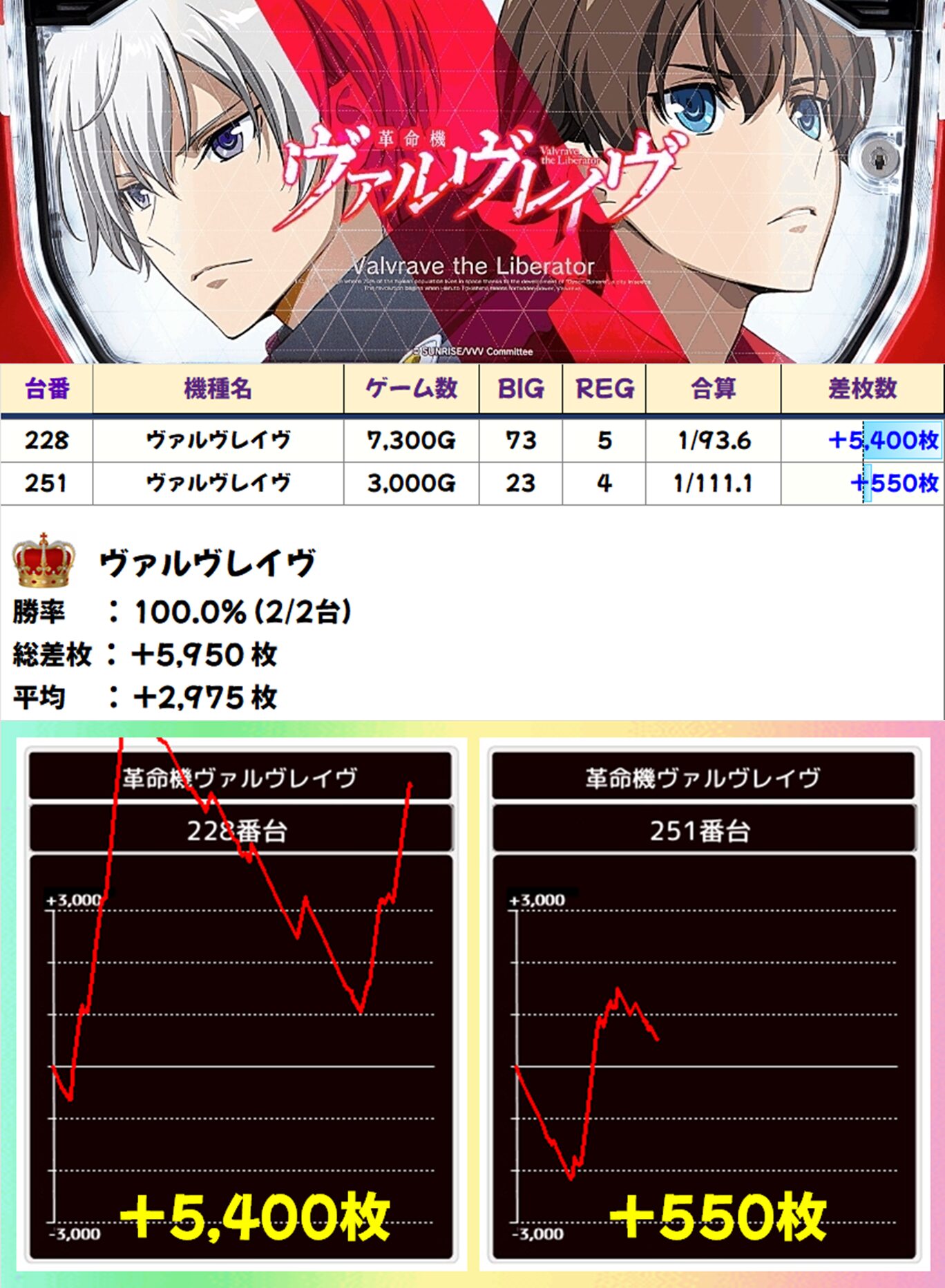 ヴァルヴレイヴ2(4/7台):平均+1,579枚