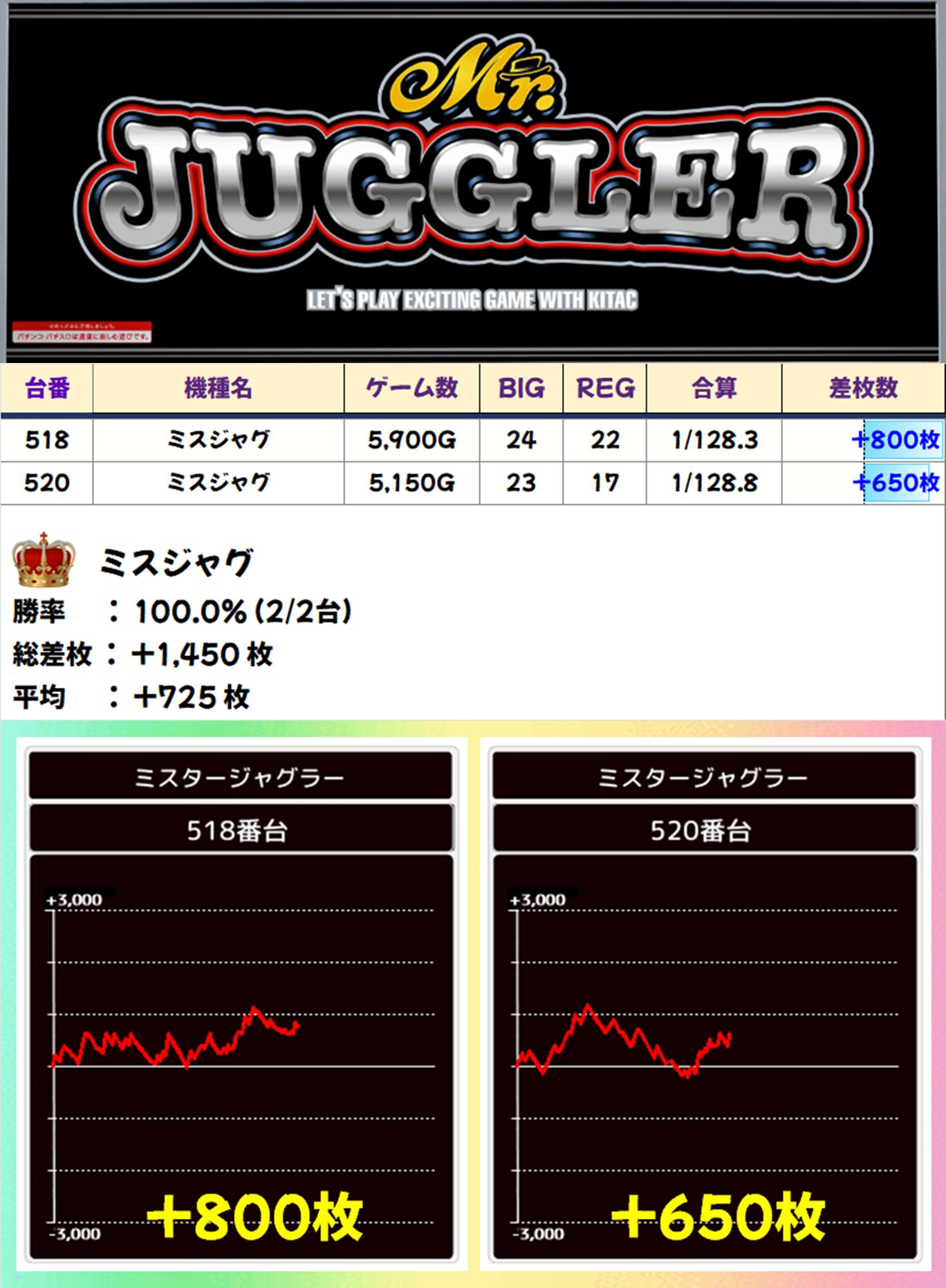 ⑥のつく日はジャグラーシリーズの扱いも○! 本日は「ミスタージャグラー」が全台系濃厚、その他のジャグラーにも単品が多数あったので、⑥のつく日はジャグラーシリーズも狙い目ですよ!