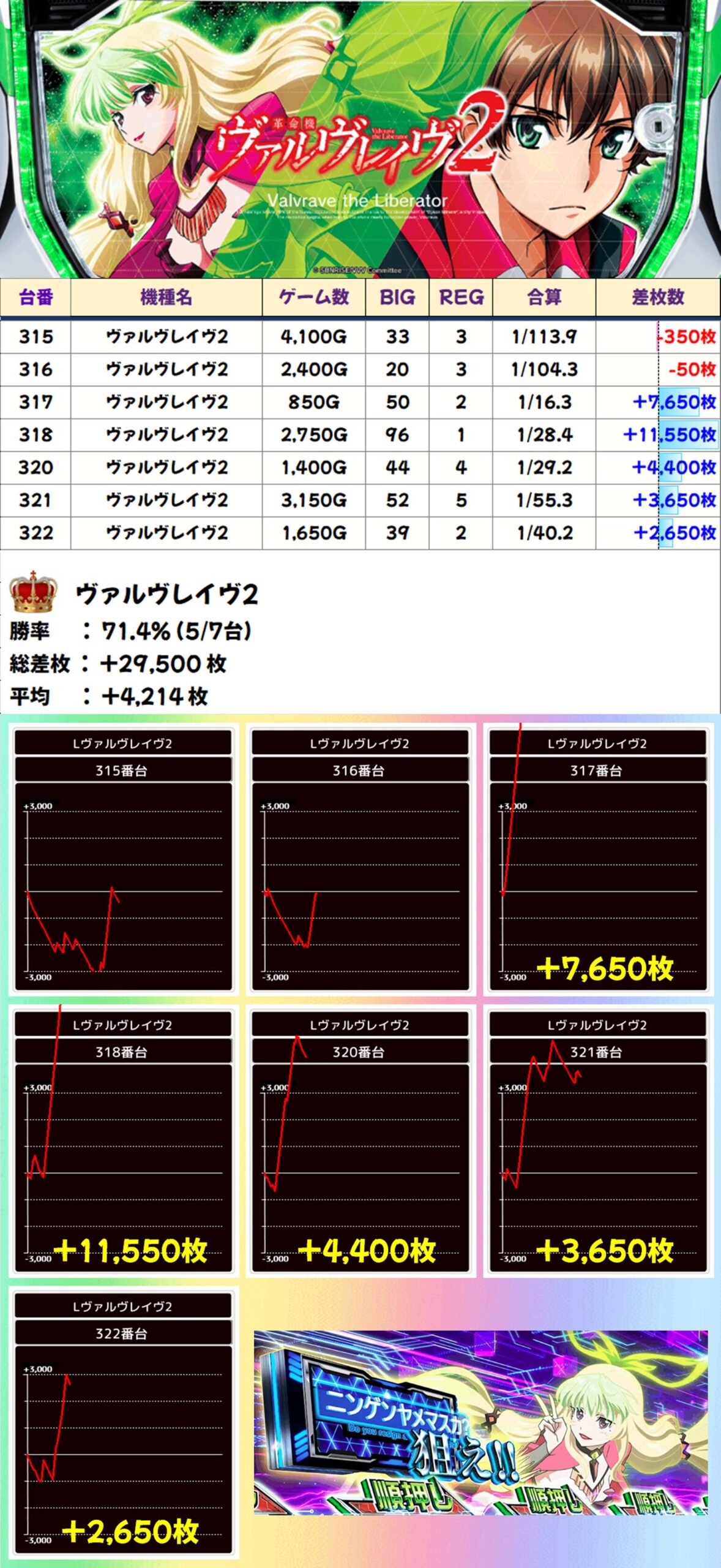 ヴァルヴレイヴ2(5/7台):平均+4,214枚
