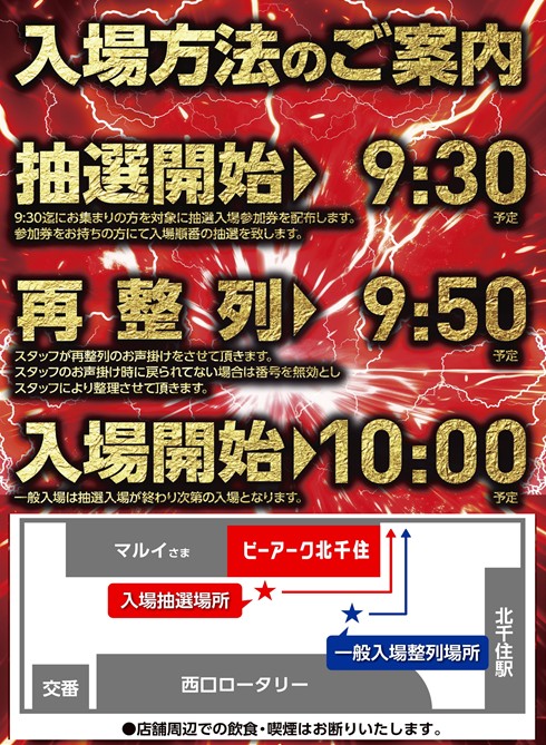 9:30までに抽選会場に集合した人を対象に入場抽選を行う。9:50再整列。