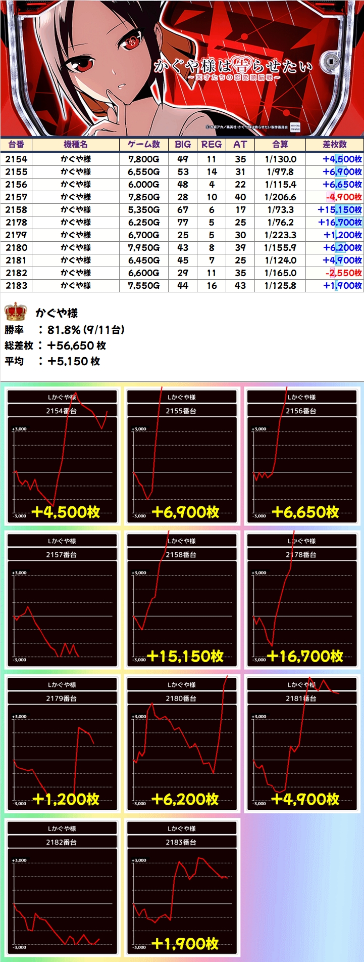 かぐや様(9/11台+)➡平均+5,150枚