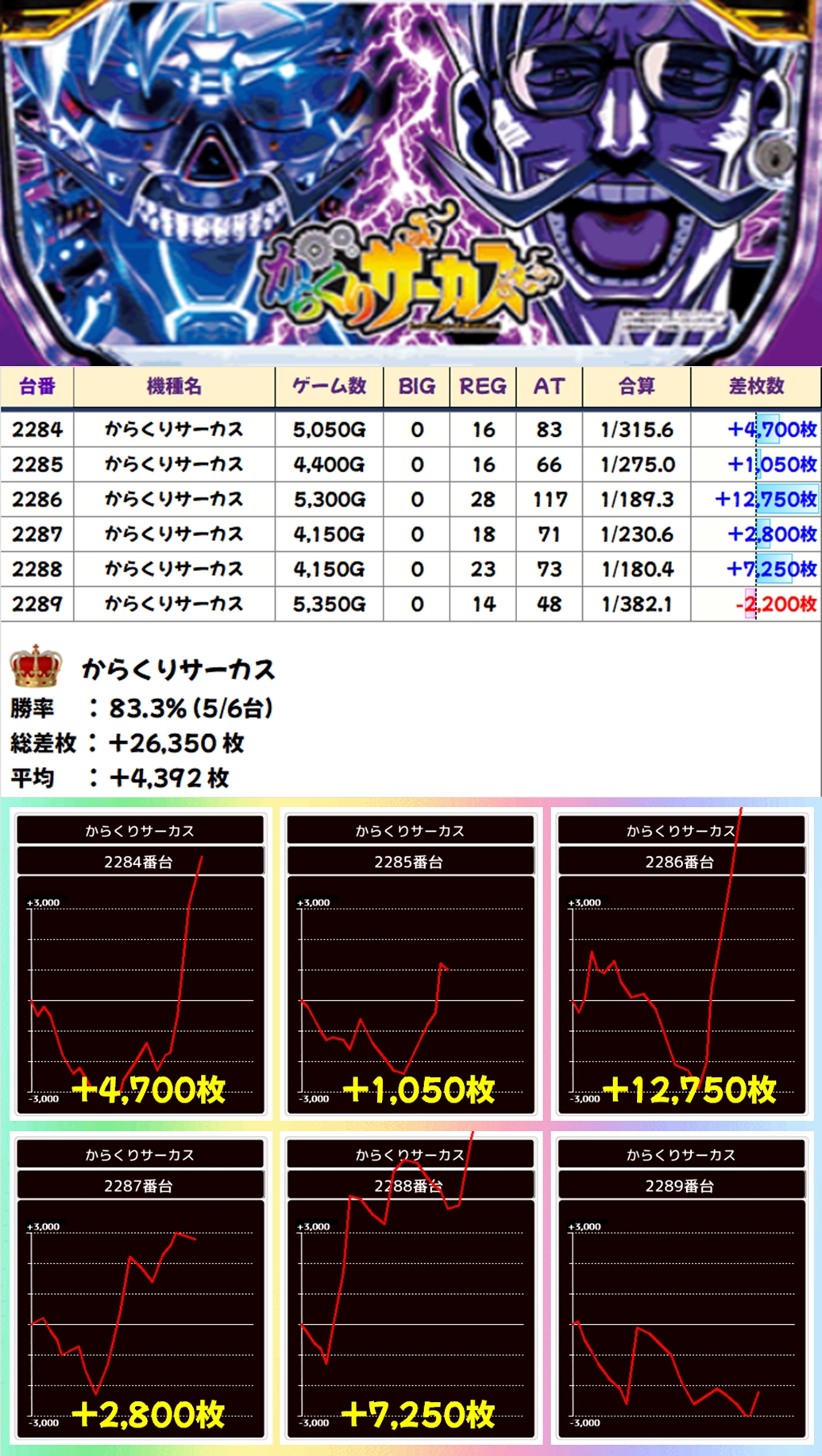からくり・フェイスレスパネル(5/6台+)➡平均+4,392枚