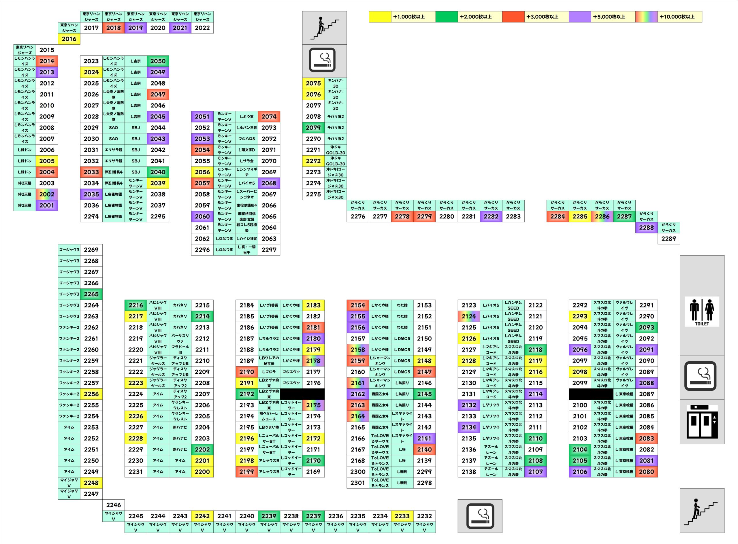 この日は並び仕掛けも充実! 1/2系濃厚機種、全台系濃厚機種と絡めた機種またぎ、ジャグシリーズから複数など、計6か所!土曜日は傾向的に並びが非常に強いんです!