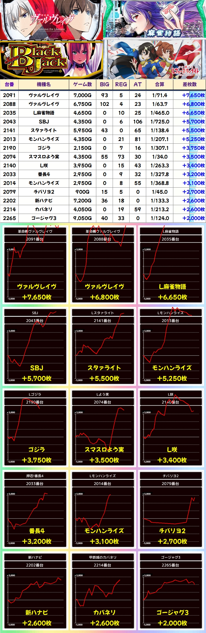 前述した通り、この日は山ほど仕掛けがありましたが、「ヴァルヴレイヴ」の+7000枚クラス×2台など、単品の優秀台もたっぷりありました!