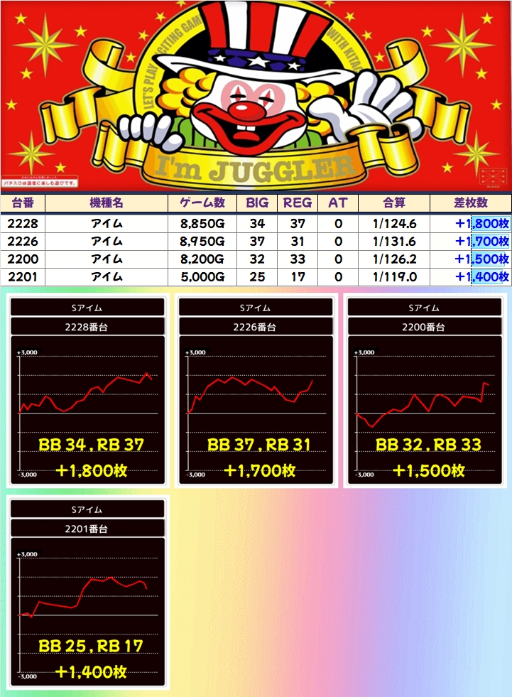 アイム(10/15台+)➡平均+183枚