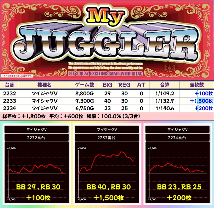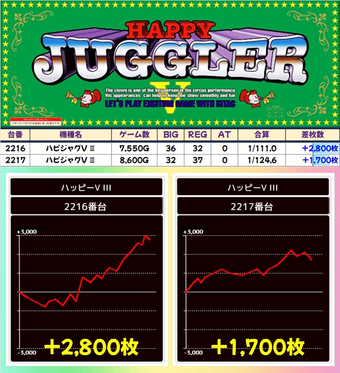 平均差枚+800枚以上のスーパー好結果!