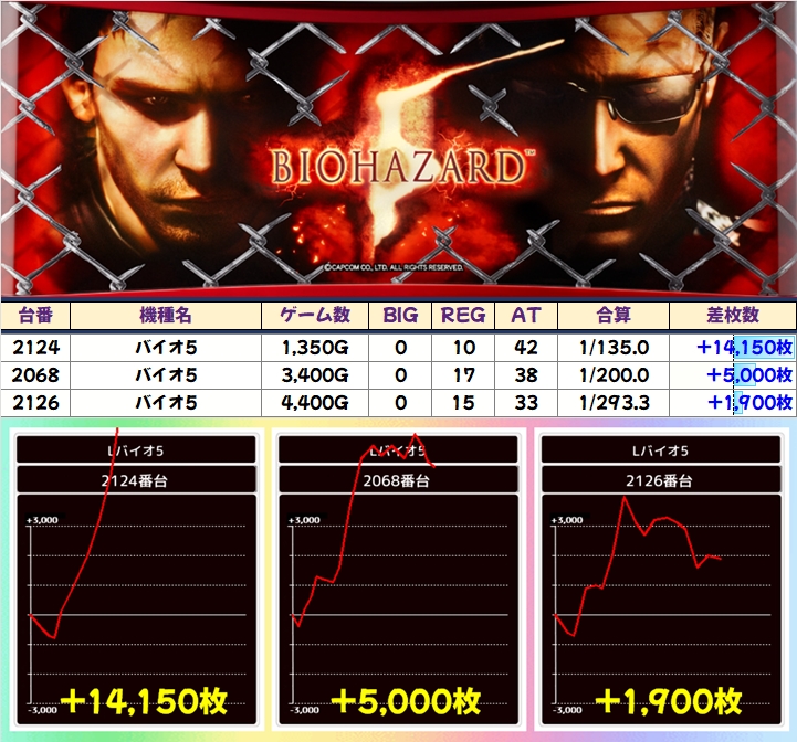 バイオ5(3/5台+)➡平均+3,560枚