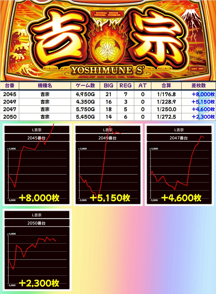 吉宗(4/6台+)➡平均+2,567枚