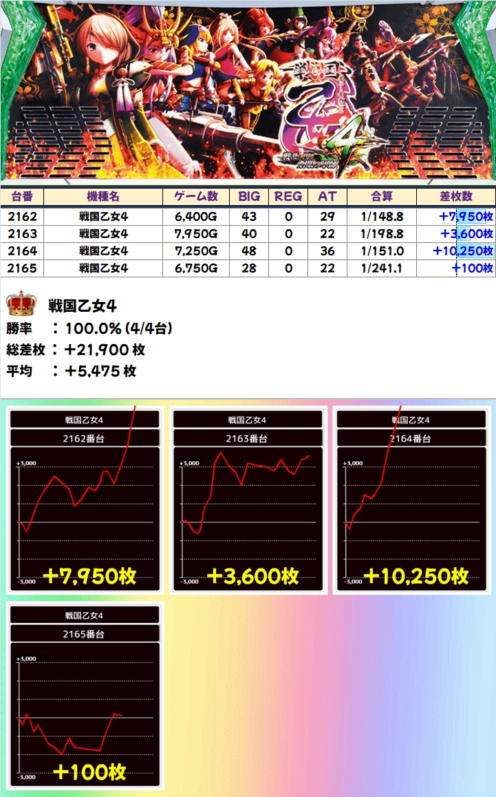 戦国乙女4(4/4台+)➡平均+5,475枚