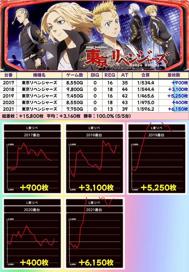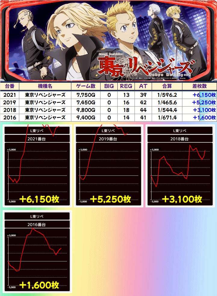 東京リベンジャーズ(6/8台+)➡平均+1,363枚
