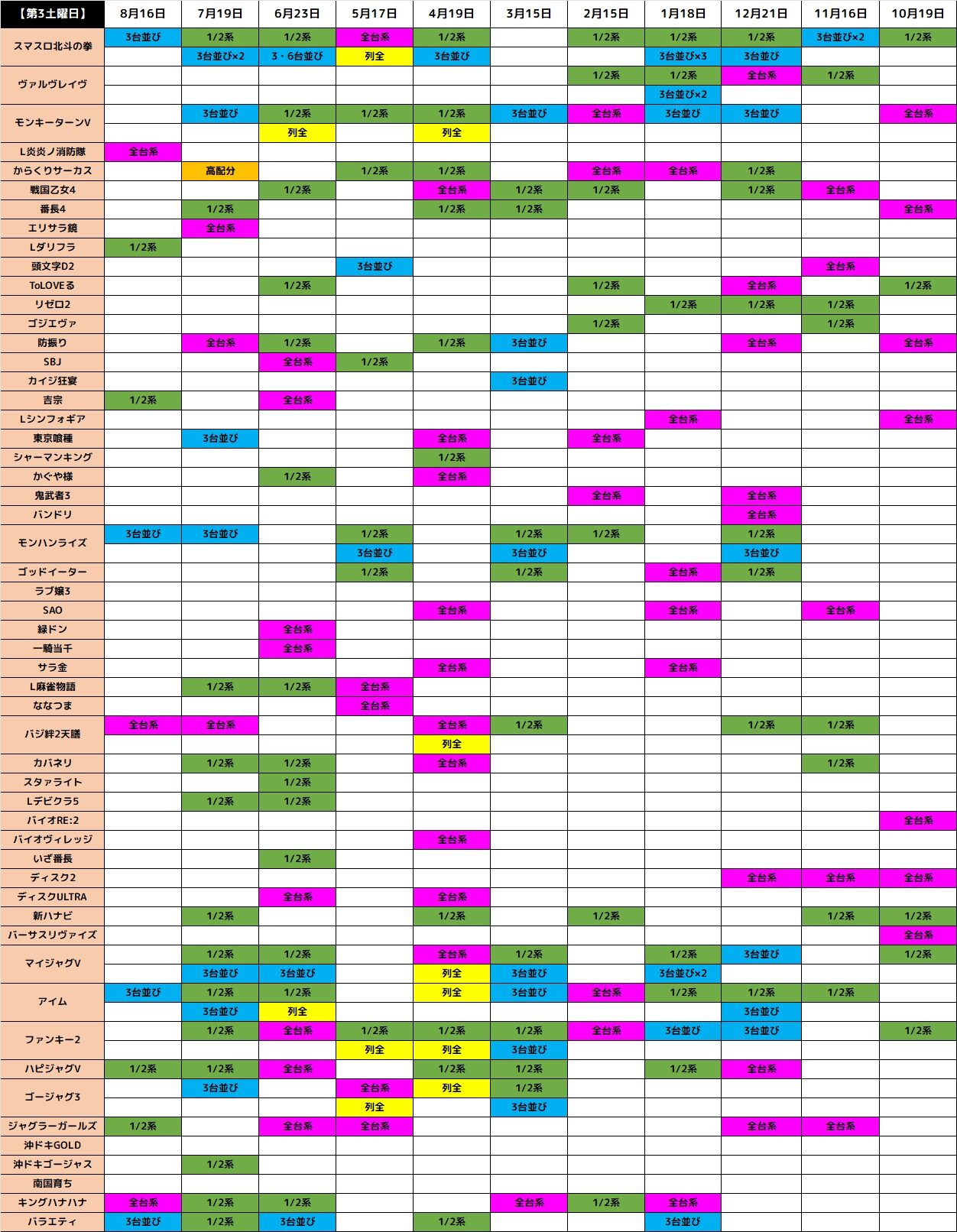 仕掛けは大量の全台系濃厚、高配分、並びなどが充実しており、「北斗・モンキーv・ジャグ・沖スロ」は高頻度で仕掛けに絡んでいます!