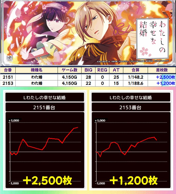 出玉の方も「からくりサーカス」の万枚オーバー、他機種にも+2000枚以上の優秀台を確認!
