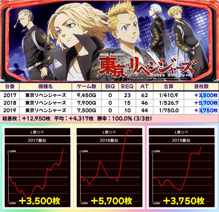東京リベンジャーズ(2017-2019番台)➡平均+4,317枚