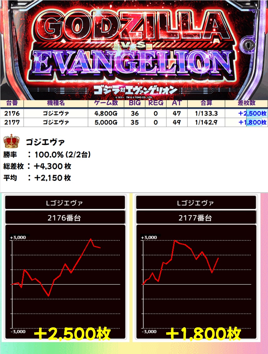 ゴジエヴァ(2/2台+)➡平均+2,150枚