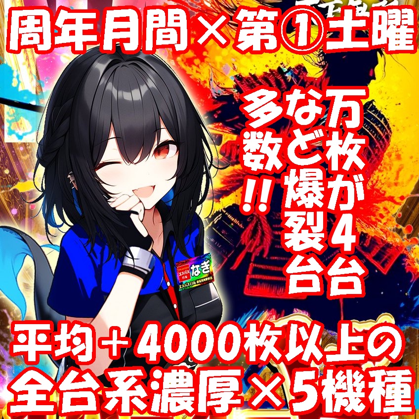 この日は「万枚が大量4台、+5000枚以上が25台、+1000枚以上が約90台」と店内各所で盛り上がりをみせていました!