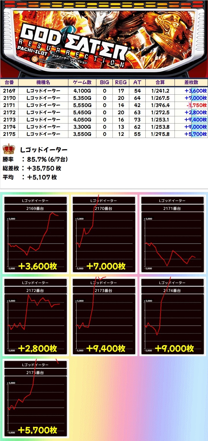 Lゴッドイーター(6/7台+)➡平均+5,107枚
