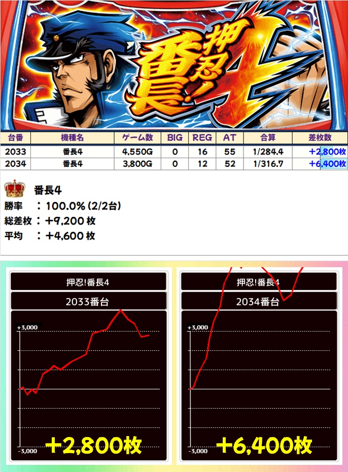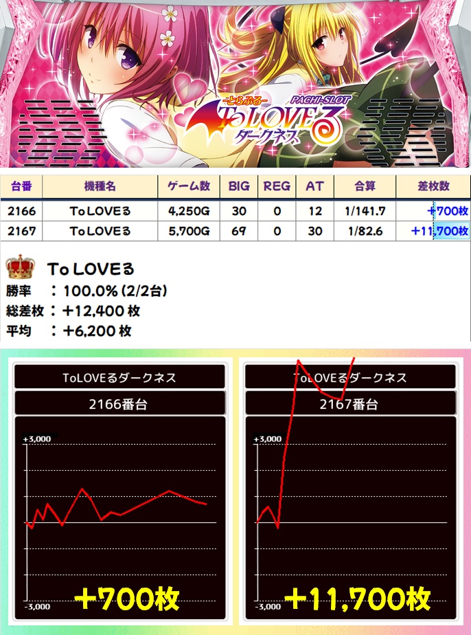 両機種とも全台プラスは当たり前、「To LOVEる」からは万枚オーバー、「番長4」からは+6000枚以上のモンスター台が爆誕!