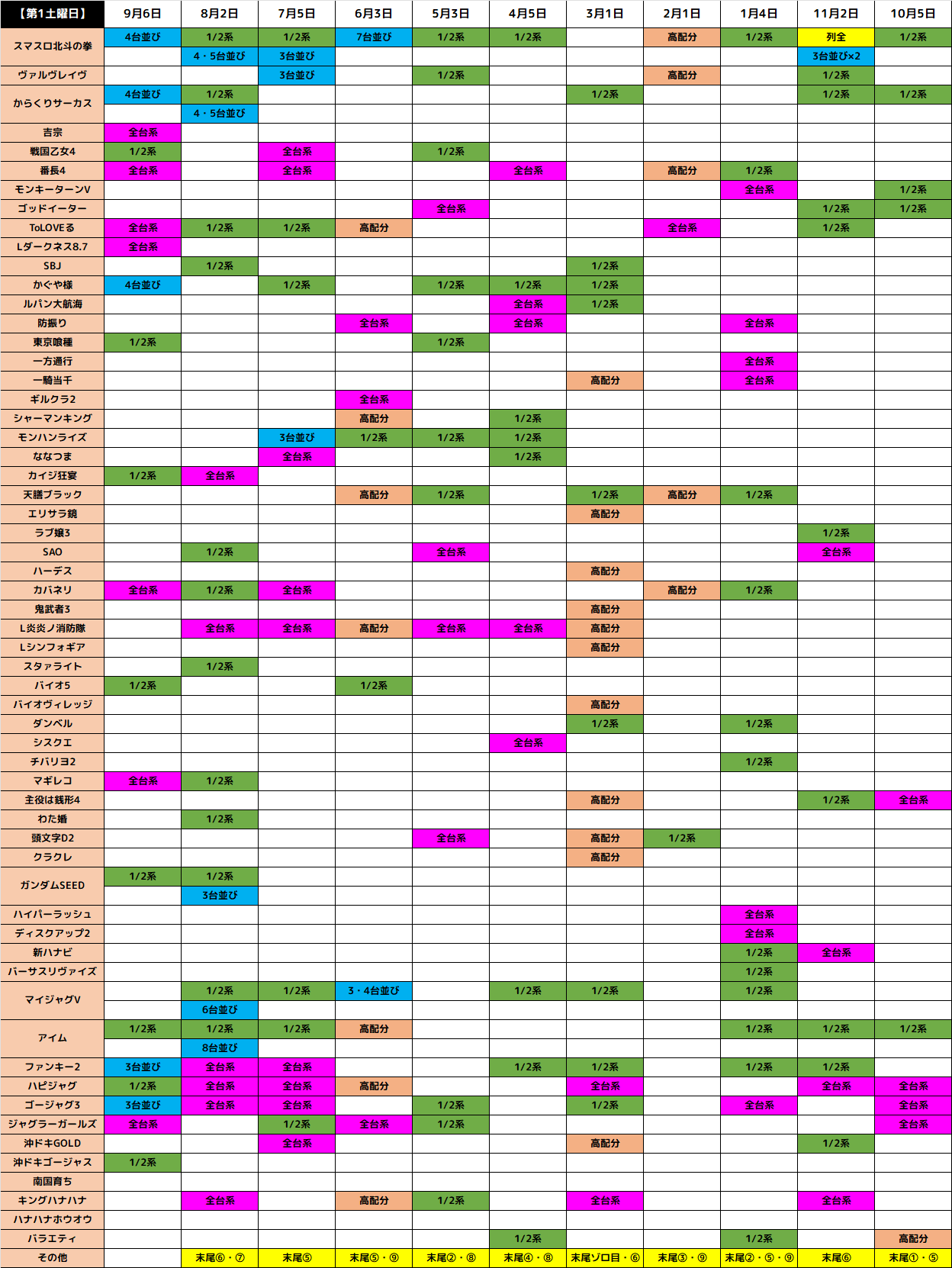 両末尾とも半数近くの台が+1000枚以上を達成!高配分以上は間違いないかなと!