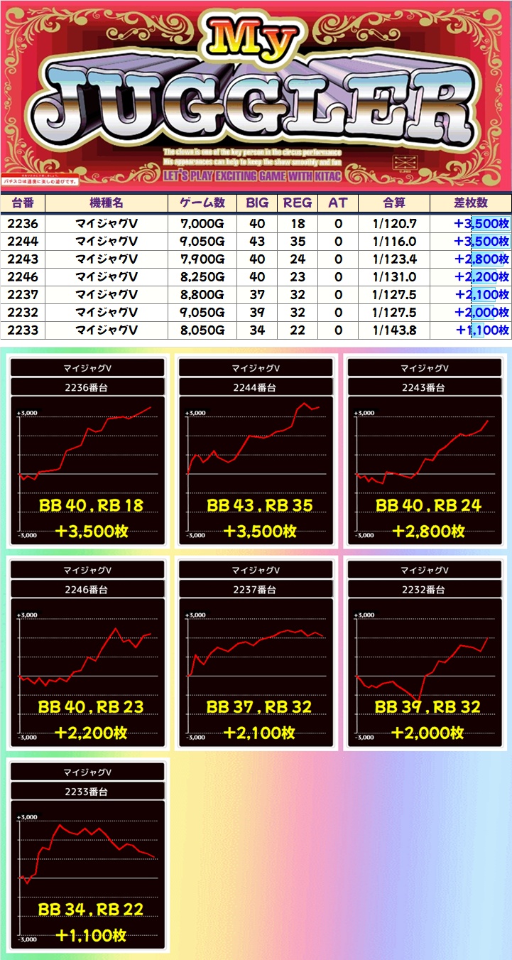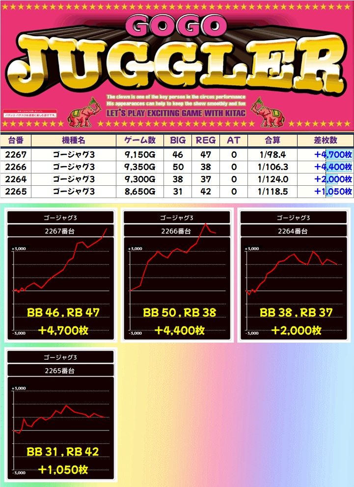 今回も平均+123枚&総差枚+3.7万枚としっかり結果を残しましたね!