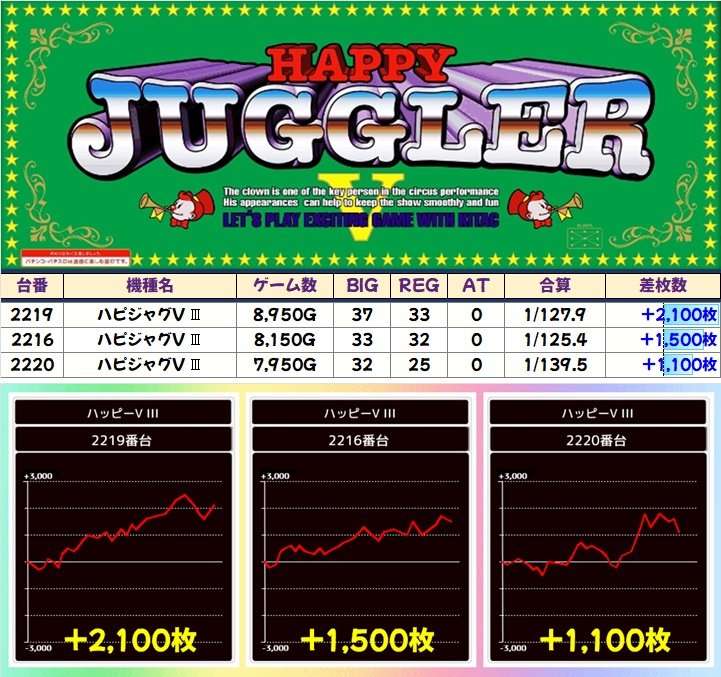 +3000枚以上×3台を筆頭に17台中12台と8割以上の台が+1000枚以上と圧倒的な安定感を発揮!